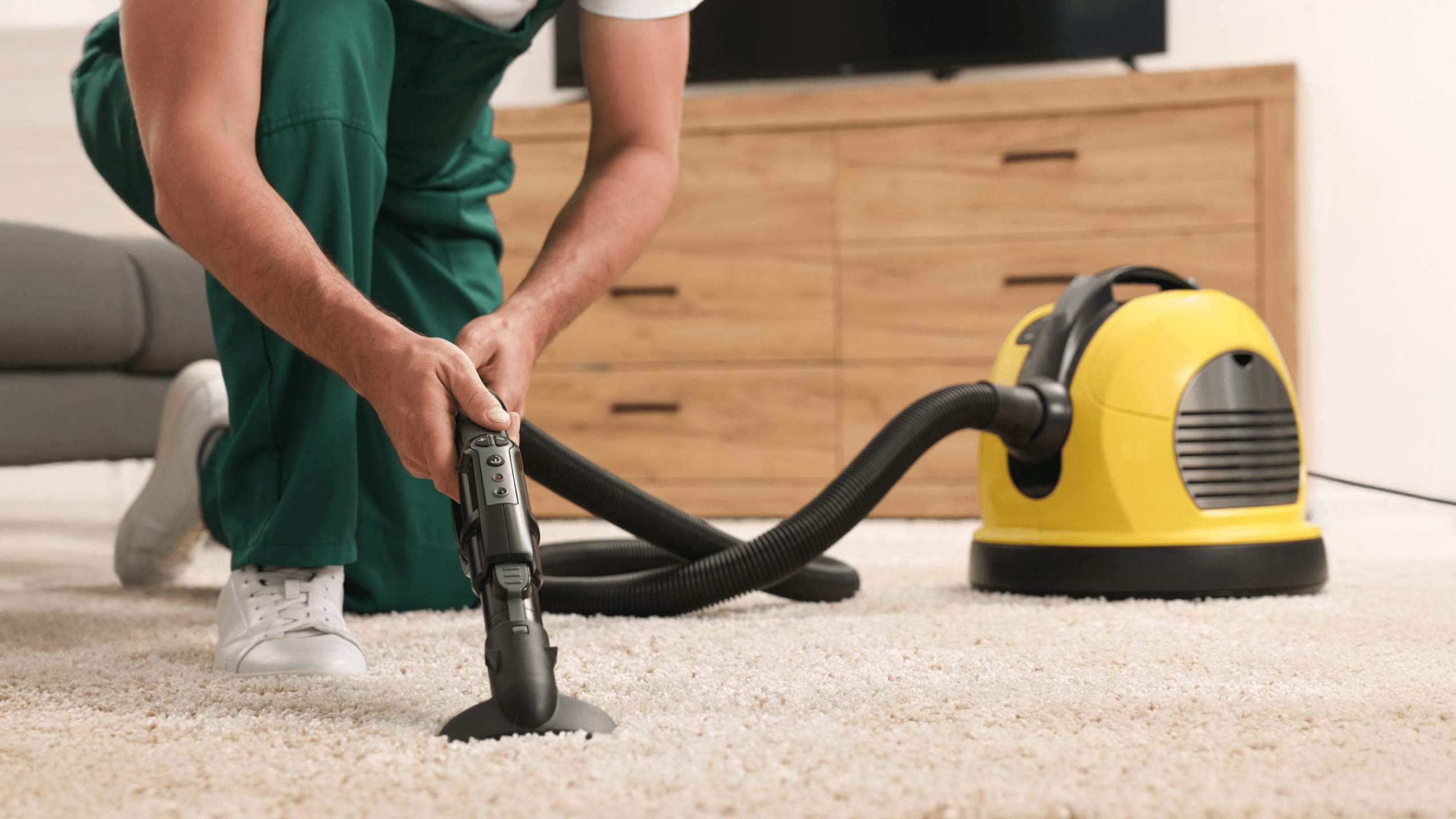 All necessary cleaning materials, including eco-friendly supplies, vacuum, and mop, are supplied by us.